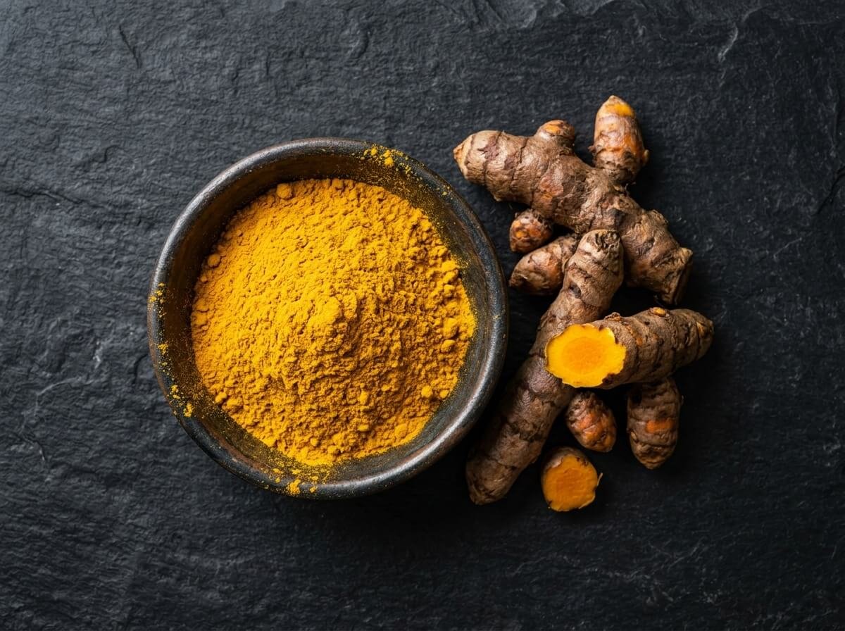 Premium turmeric in powder and finger form with rich color and high curcumin content.